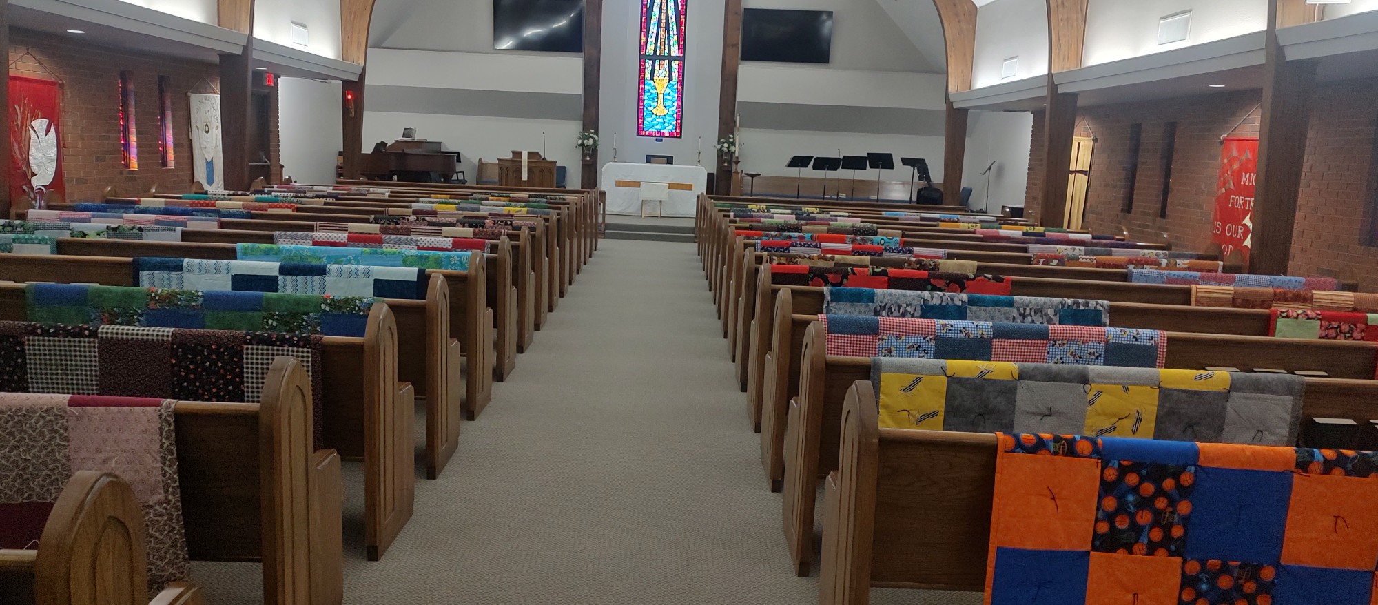 We learned that fire and police departments give quilts to affected families, for warmth and comfort. We then began looking around at other charities in the area. We also looked at our own congregation. We started giving our hand made quilts on special occasions such as graduating seniors and baptismals. We, also, host a "Tie a Knot, Say a Prayer" Quilt event for congregates that have a serious illness or accident.